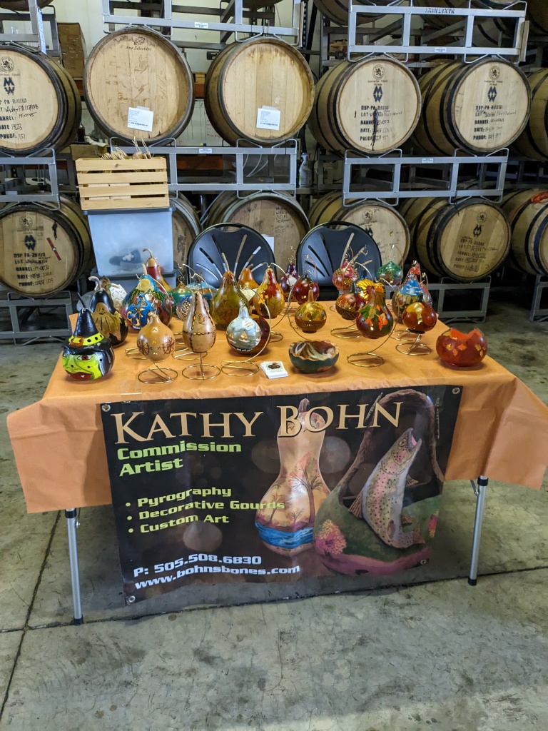 As a professional artist, one of the great joys in my adventure has been working within my community to promote and support the arts and our role as artists. There are so many opportunities for an artist to showcase their talents by partnering with local businesses! One example is the partnership I’ve gained working with Manatawny Stillworks Distillery in Pottstown. They have such a great atmosphere and the staff becomes like family almost instantly! The bartenders join in the setup of each event, whether it’s the Maker’s Markets or the Cocktails and Canvas workshops that I host. (See the events page at bohnsbones.com) I enjoy telling my current and prospective clients about our relationship and their great venue to ensure that they get more traffic and exposure, which only helps me when my clients decide to join in at my workshops and market tables. Helping to promote each other on Social Media – Facebook, Instagram, etc. is a great connection we share because we’re both on the mission of bringing in and celebrating our connection with as many people as we can reach. Our social media collaborations allow us to have client crossover, with my clients discovering their great whiskeys and other products and events, and their clients get to experience my workshops and my gourd and pyrography products.